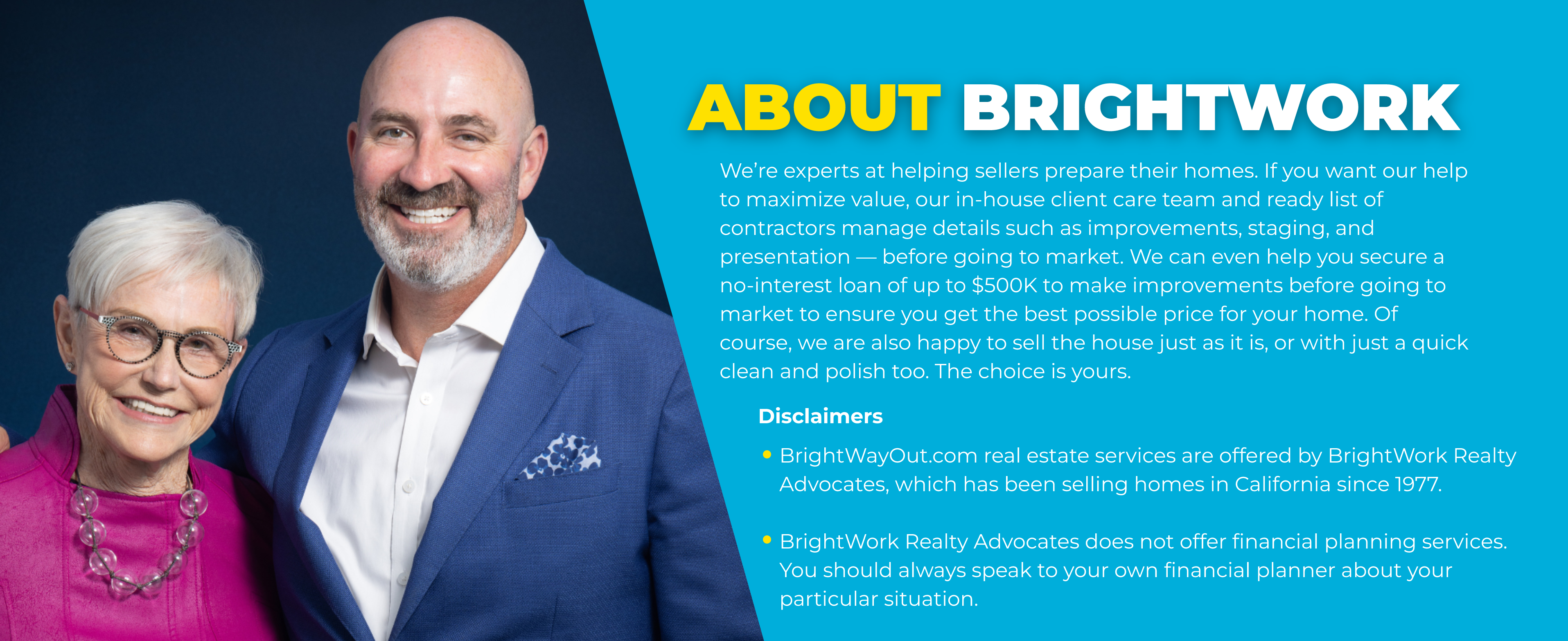 - BrightWayOut.com real estate services are offered by BrightWork Realty Advocates, which has been selling homes in California since 1977.